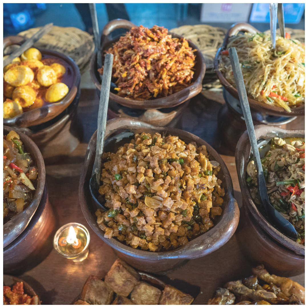 Food plays an essential role in Indonesian culture, with rice as the centerpiece of nearly every meal—after all, Indonesia is the largest producer of rice in the world! Meals typically consist of rice paired with vegetables and small portions of meat, all seasoned with rich, aromatic spices that pack a punch. Indonesian cuisine is full of bold flavors and heat, making it a treat for anyone who loves spices. But it’s not just about the main meals; Indonesians are also passionate snackers, with a culture that’s almost synonymous with “constant eating.” Whether it’s street food or homemade treats, there’s always something delicious to try.
